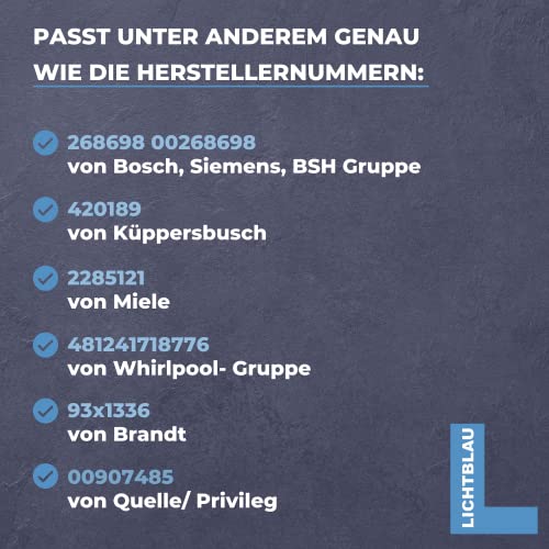 Specificaties: Lichtblau 2 x deurscharnier voor koelkast frontmontage I geschikt voor Bosch en Siemens 00268698, Miele 2285121, Privileg 00907485 en nog veel meer. Scharnierset voor koelkastdeur