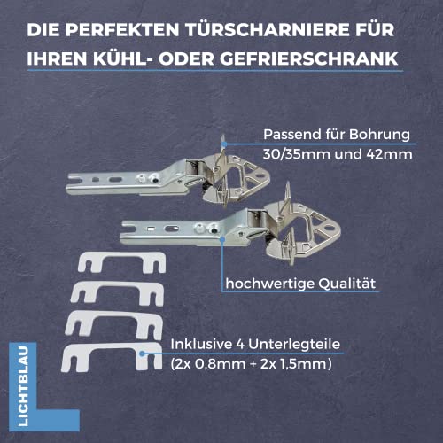 Levering inclusief accessoires: de levering van onze hoogwaardige lichtblauwe reserveonderdelen omvat twee deurscharnieren en vier onderdelen (2 x 0,8 mm + 2 x 1,5 mm) – montagehandleiding inbegrepen.