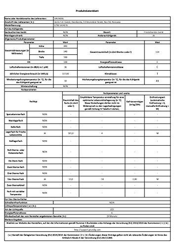 Specificaties: GRUNDIG 14140 N tafelkoelkast met 4-sterren vriesvak, geschikt voor inbouw, 36 dB